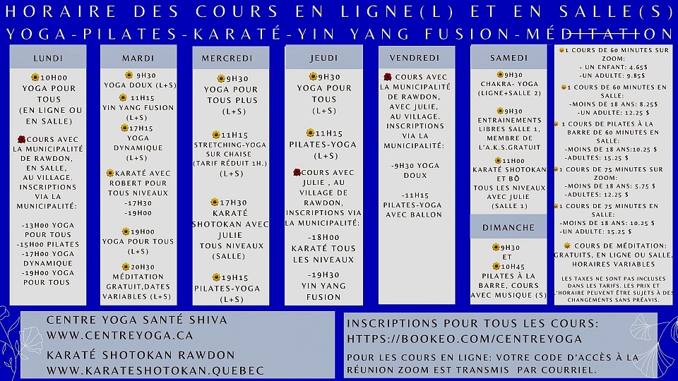 🌺Site internet pour tous les cours: www.centreyoga.ca